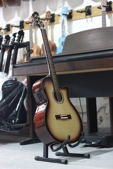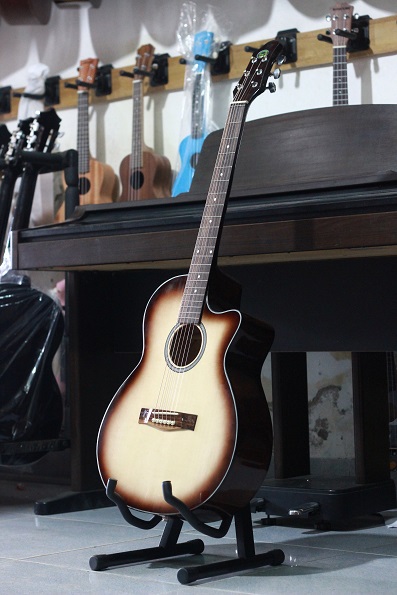 - Guitar - Mặt gỗ thông nguyên tấm – có ty chỉnh cong cần – Eo lưng ván ép, có bọc viền đàn chỉ trắng – mặt cần gỗ Mun, cần gỗ thao lao Phím Inox không mòn , Dây đàn Alice 406